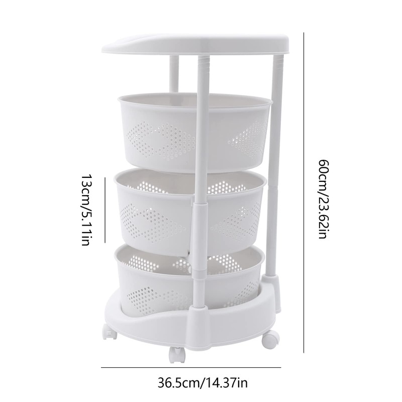 ILWorkTLs 3-Tier Adjustable Kitchen Storage Rack,3 Layer Rotating Vegetable Organizer with Lockable Casters,Multi-Layers Rotatable Baskets for Kitchen Bathroom Living Room,White