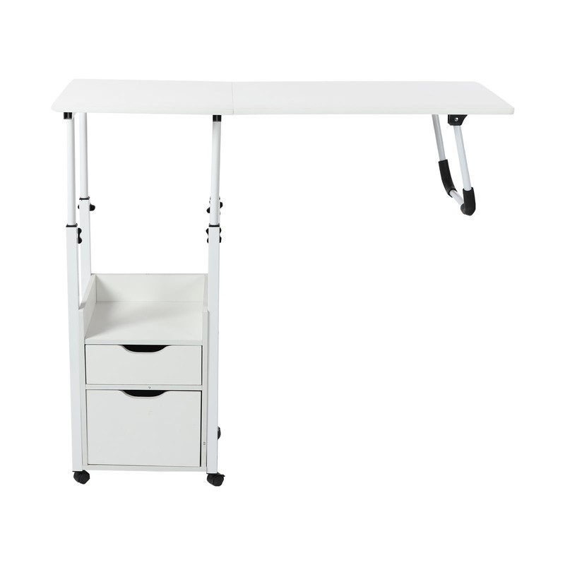 ILWorkTLs Height Adjustable Overbed Bedside Table with Wheels and Foldable Tabletop,Over Bed Laptop Desk with Drawer,White