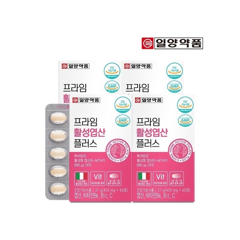 Ilyang Pharmaceutical Prime Active Folic Acid 60 Tablets (4 Boxes) (8 Month Supply) / Quadruple Functional Support for Pregnant and Lactating Women / 일양약품 프라임 활성 엽산 60정 4박스(8개월분) 임산부 수유부 4중복합기능성