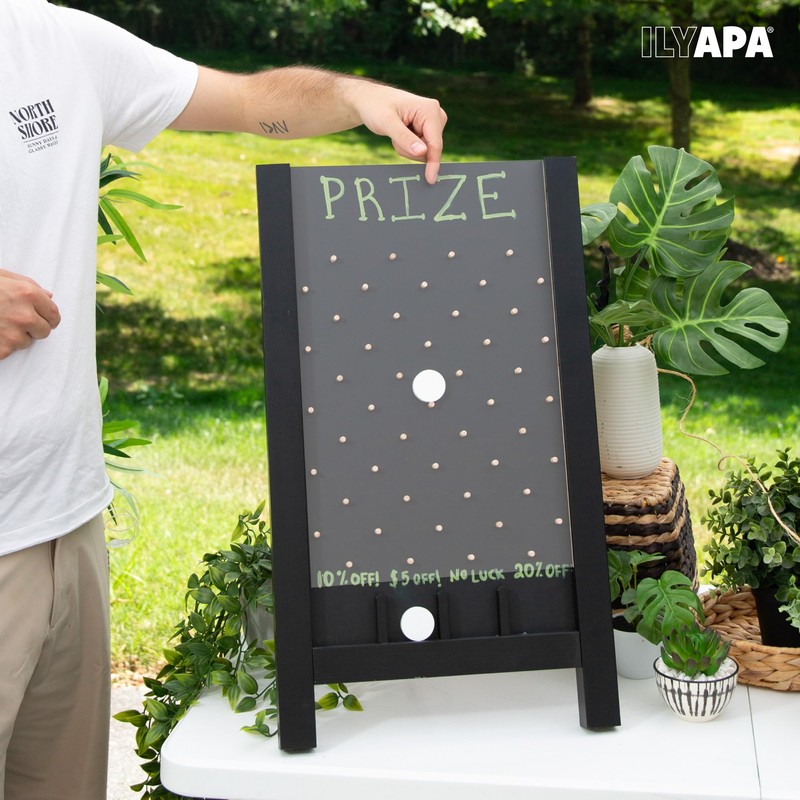 Ilyapa Board - Large Portable Prize Drop Game for Events and Trade Show - 14 x 24 Inch Wooden Sign Penny Drop Game - Includes 8 Coin Drop Discs, Chalk, Magnetic Eraser