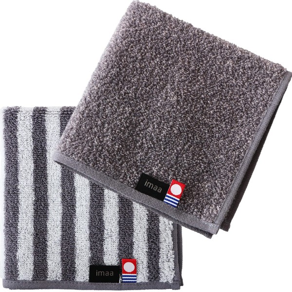 imaa Imabari Towel, Certified Hand Towel, Towel Handkerchief, Made in Japan, 100% Cotton, 15-Shimajima Gray x Mix Gray