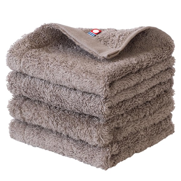 Imabari Towel, Face Wash Towel, Set of 4, Mofutto Hand Towel, Towel Handkerchief, Thick, Fluffy, 100% Cotton, Made in Japan (Brown)