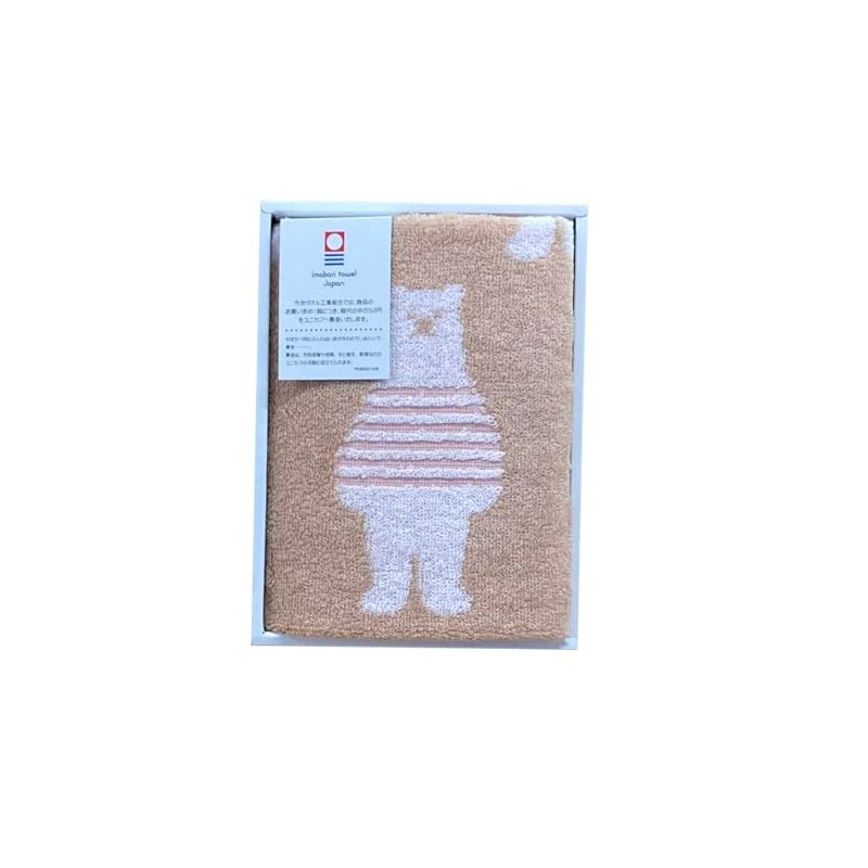 Imabari Towel Gift Set Face Towel 1 Piece Border Bear Pattern Brown Made in Japan Box 13.4 x 31.5 inches (34 x 80 cm)