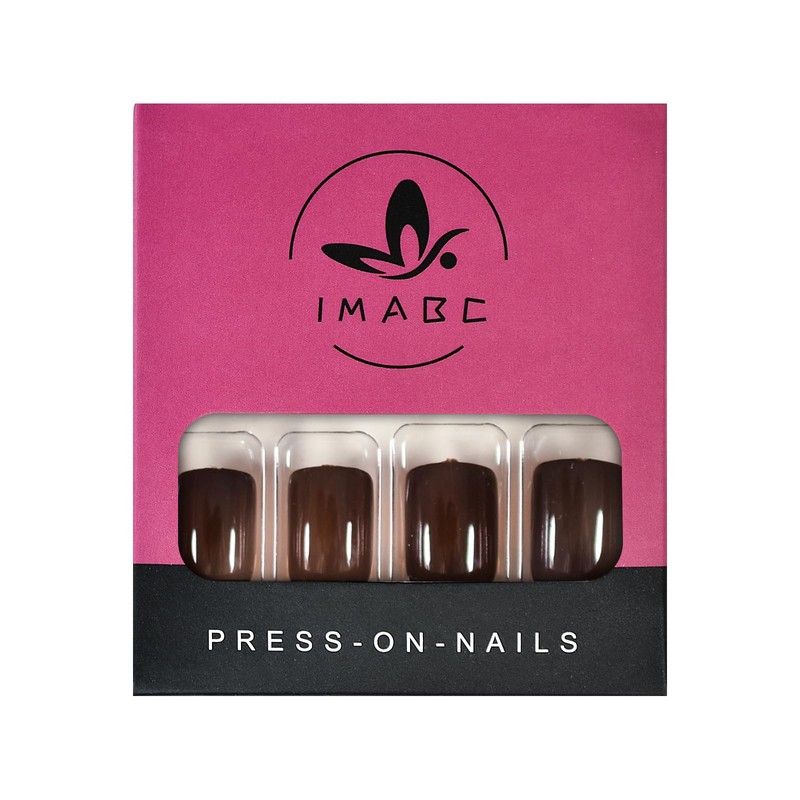 iMABC Press on Nails - Dark Brown Gel Fake Nail | Medium Square Glossy Soft Solid False Nails | Glue Acrylic Decoration Manicure Gift for Girls Women Dating 24Pcs