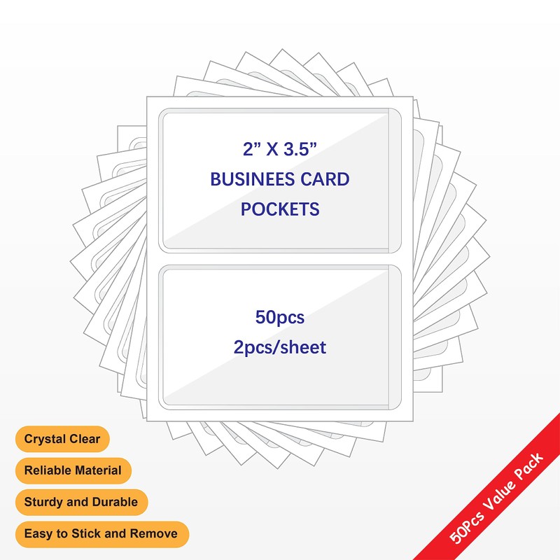 - Value Pack: This pack includes 50 Pcs 2-1/2” x 4-1/8” adhesive pockets with a side opening for easy and convenient loading, perfect for 2x3.5 inch business card.