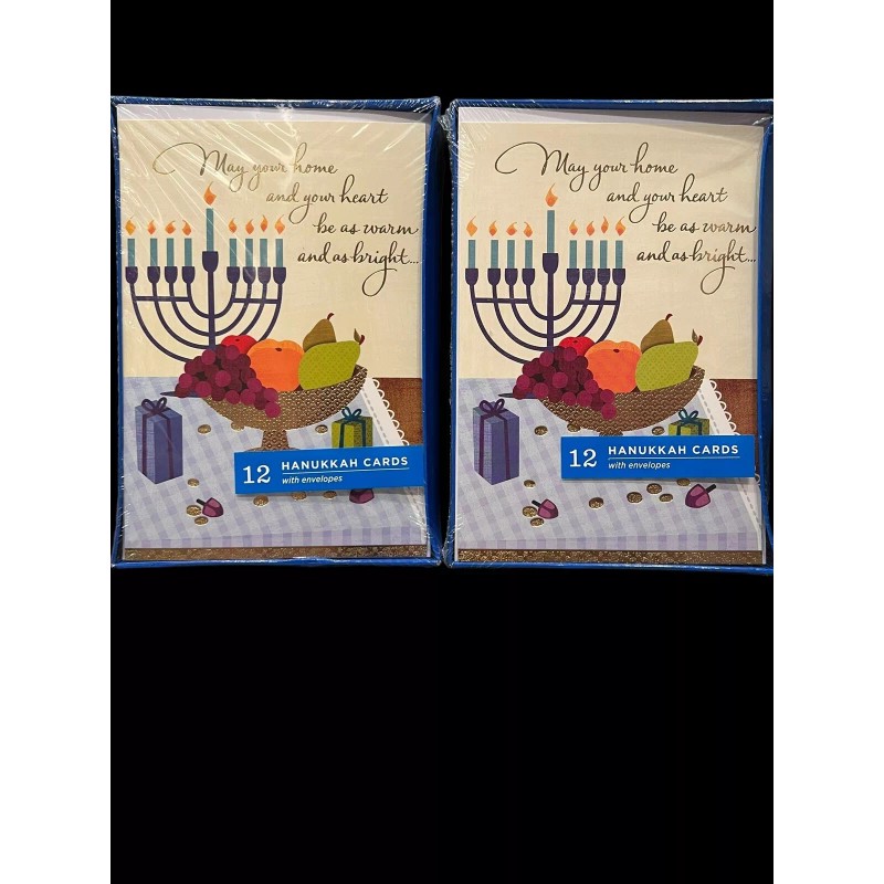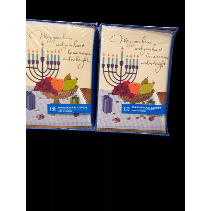 Image Art Happy Hanukkah 12 Cards Menorah Dreidel Fruits Presents Coins FREE SHIP 2 Boxes