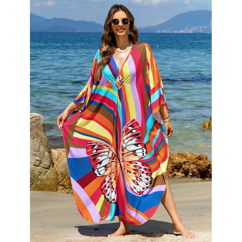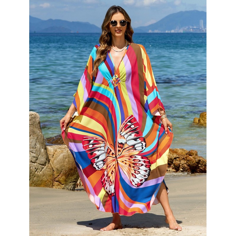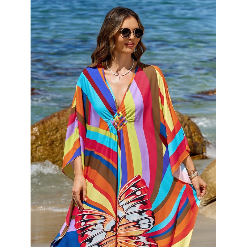 - Versatile Style Fit: our kaftan dresses for women and breezy caftans for women, designed with a deep V-neck and batwing sleeves. Perfect as a kaftan swim cover up or elegant loungewear, they fit US sizes S-2XL (bust up to 57", length 53.1").