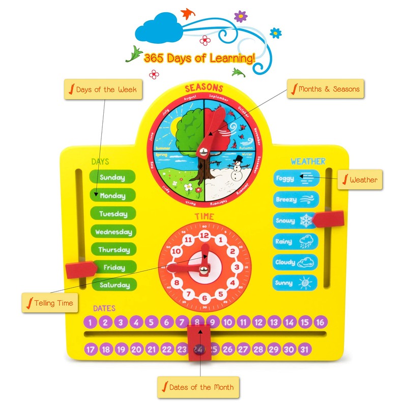 • 5 Lessons In 1: Teach kids how to tell time, identify seasons, days of the week, months and dates all in one convenient learning tool