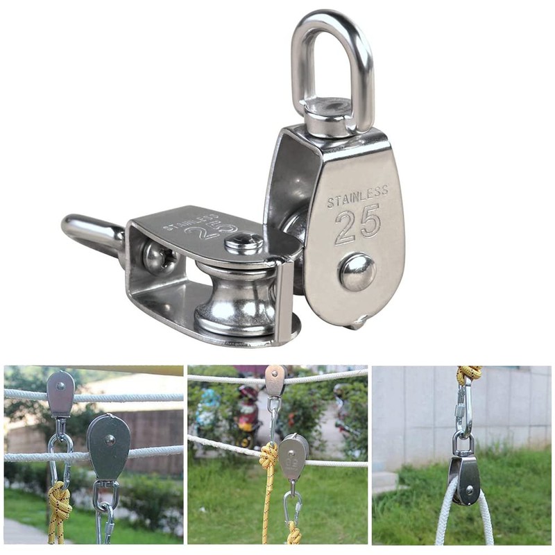 IMAGINE IMAGINE 2Pcs M15 M20 M25 Silver Single Pulley Block 304 Stainless Steel Single Wheel Wirerope Traction Trolley Crane Swivel Hook Pulley Roller Loading (M25 150kg)