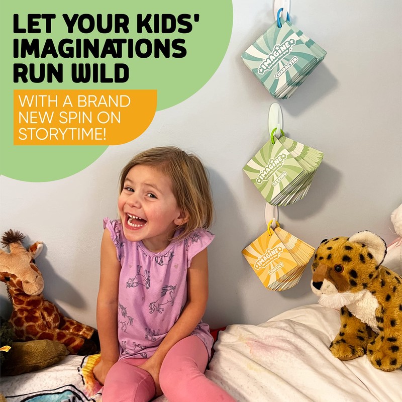 - WHAT’S INSIDE: Includes 120 large 4”x4” high-quality cards for endless fun. Includes 40 character cards, 40 setting cards, and 40 conflict cards. Includes 3 reclosable rings for each deck and 3 hooks for easy storage in the playroom or bedroom.