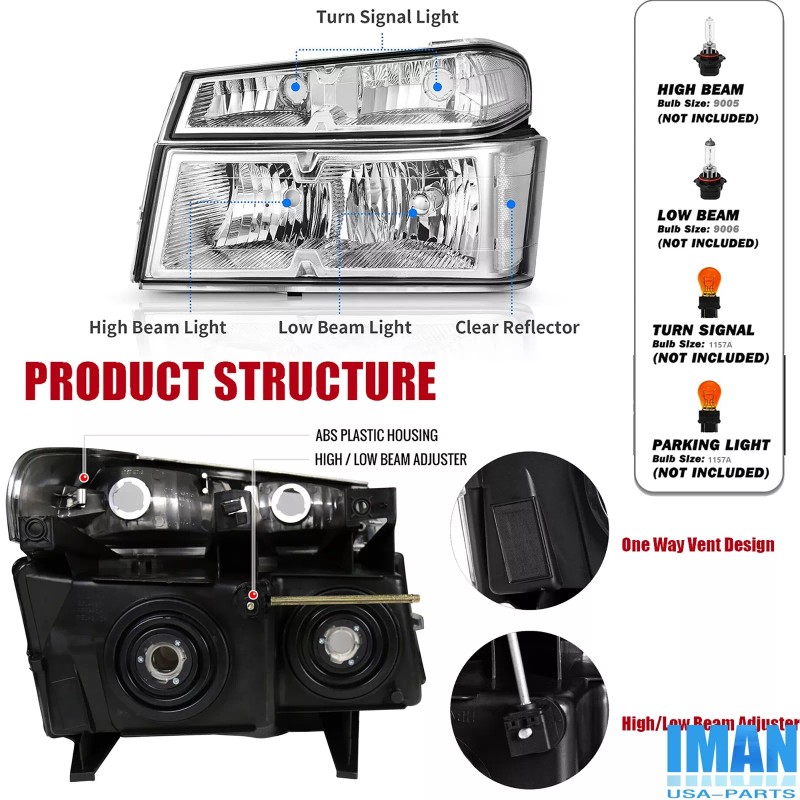 Iman365 White Concer Chrome Housing Headlights + Tail light For Chevy Colorado 2004-2012