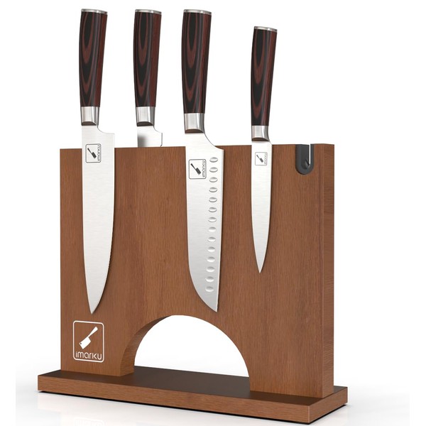 imarku Magnetic Knife Block Holder, Double Sided Kitchen Knife Holder for Counter Top, Universal Knife Block without Knives, Magnetic Knife Holder with Knife Sharpener
