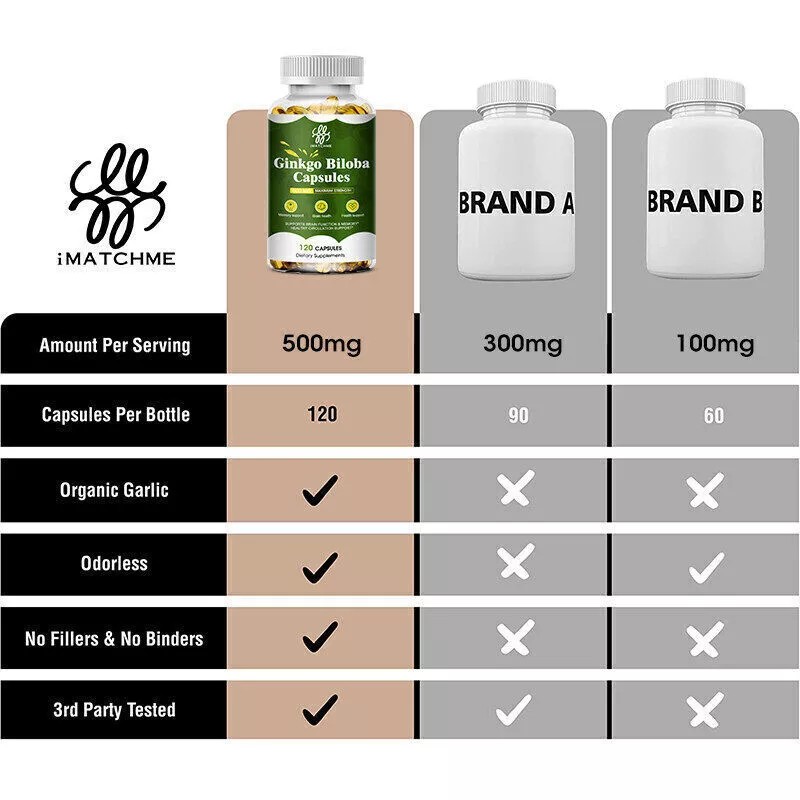 IMATCHME Organic Ginkgo Biloba 500mg, Ginko Biloba Leaf,Memory & Concentration 120 Caps