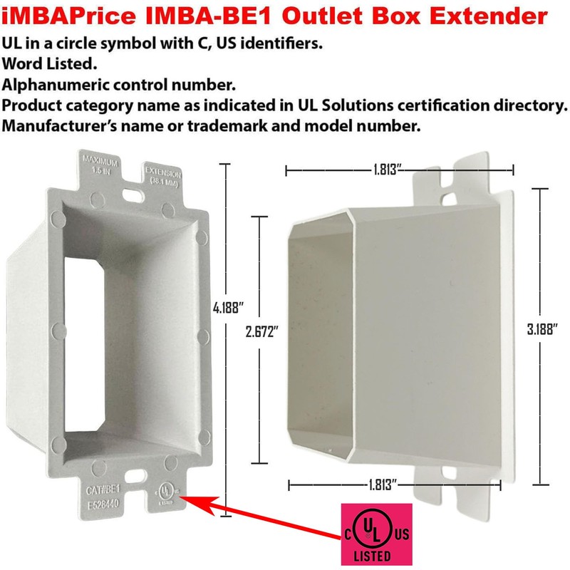 iMBAPrice IMBA-BE1-5 (UL Listed) 1-Gang Non-Metallic Electrical Power Outlet Box Extender for Power Switch Receptacles Accessories, 5-Pack