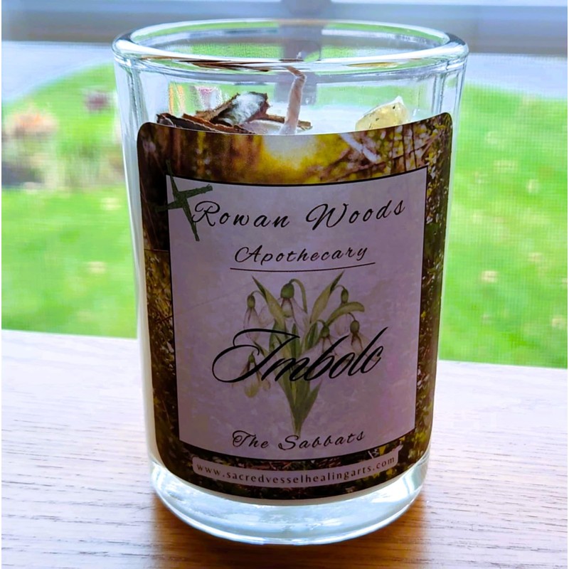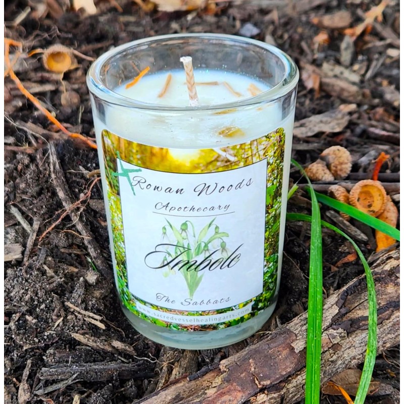 Made with love & magic by Rowan Woods Coven, for the Celtic sabbat of Imbolc! This 12 oz soy candle is from my beautiful new line of Sabbat Candles - Rowan Woods. This elegant line of precisely formulated and hand poured luminaries was inspired by the turning of the Wheel of the Year through the gorgeous landscape of each season.