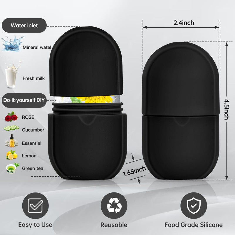 - Reusable FDA Grade Silicone This refillable silicone cube can be used multiple times and is developed with durable materials, which can save you money. In order to obtain real skin-lifting effects, customize the formula according to your specific skin needs, such as lemonade for whitening, green tea for inflammation, cucumber water for reducing swelling, and coconut milk for anti-aging.