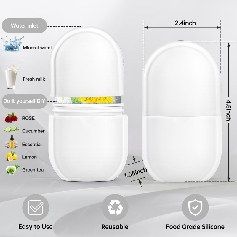 - Reusable FDA Grade Silicone This refillable silicone cube can be used multiple times and is developed with durable materials, which can save you money. In order to obtain real skin-lifting effects, customize the formula according to your specific skin needs, such as lemonade for whitening, green tea for inflammation, cucumber water for reducing swelling, and coconut milk for anti-aging.