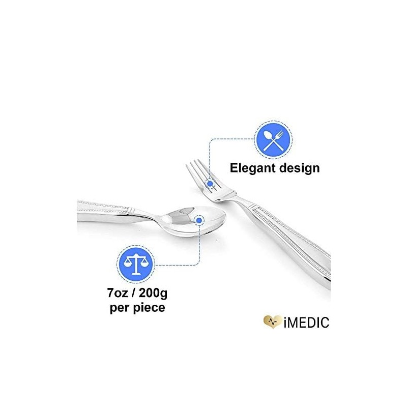 • SUPPORTIVE UTENSILS: The iMedic adaptive utensils for tremors are wider (24 mm at widest point) and weighted (200 g per utensil) to specifically aid those suffering with hand tremors, Parkinson's disease, or arthritis