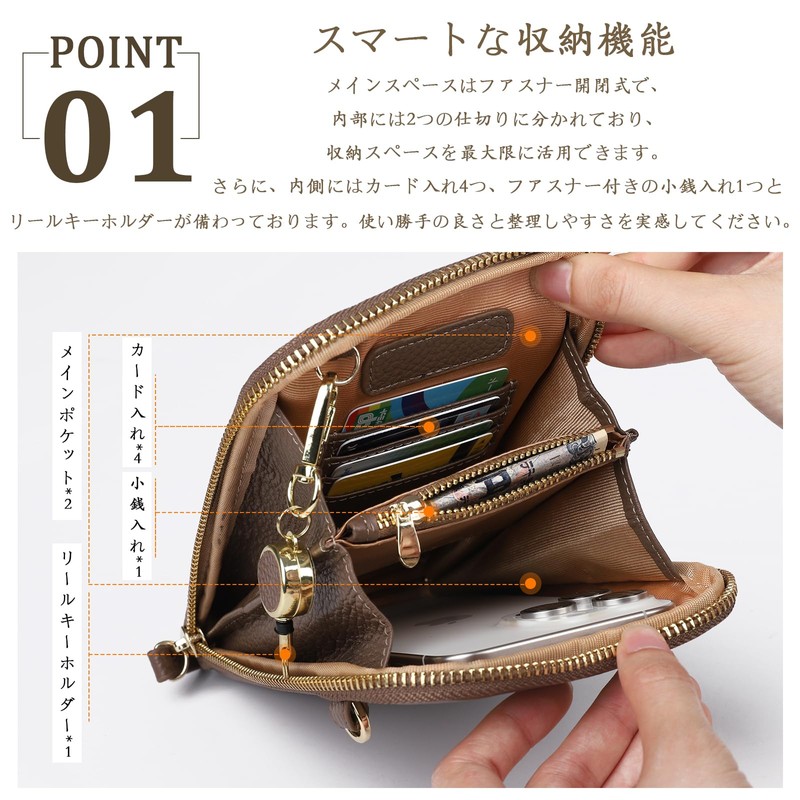 - Smart Storage Function: The main compartment is zippered opening and closing, and the interior is divided into 2 compartments, allowing you to maximize the storage space. Furthermore, the interior features 4 card slots, a zippered coin purse and a retractable key holder. Experience the ease of use and organization