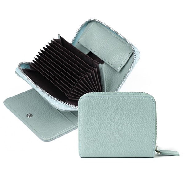 imeetu Wallet Bifold Wallet for Men and Women, Genuine Leather, Large Capacity, RFID Skimming, Mini Wallet, Compact, Card Case, Coin Purse, Key Case, Multiple Storage, Multi-functional, blue (pale)