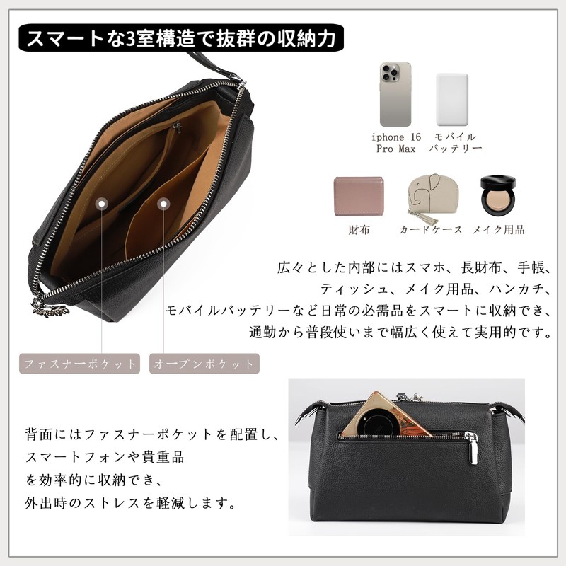 imeetu Women's High Quality Genuine Leather Shoulder Bag, 2-Way 3-Room Storage, Diagonal, Shoulder, High Visibility, Freestanding, Lightweight, Small, Stylish, Large Capacity, Soft, Simple, Casual,