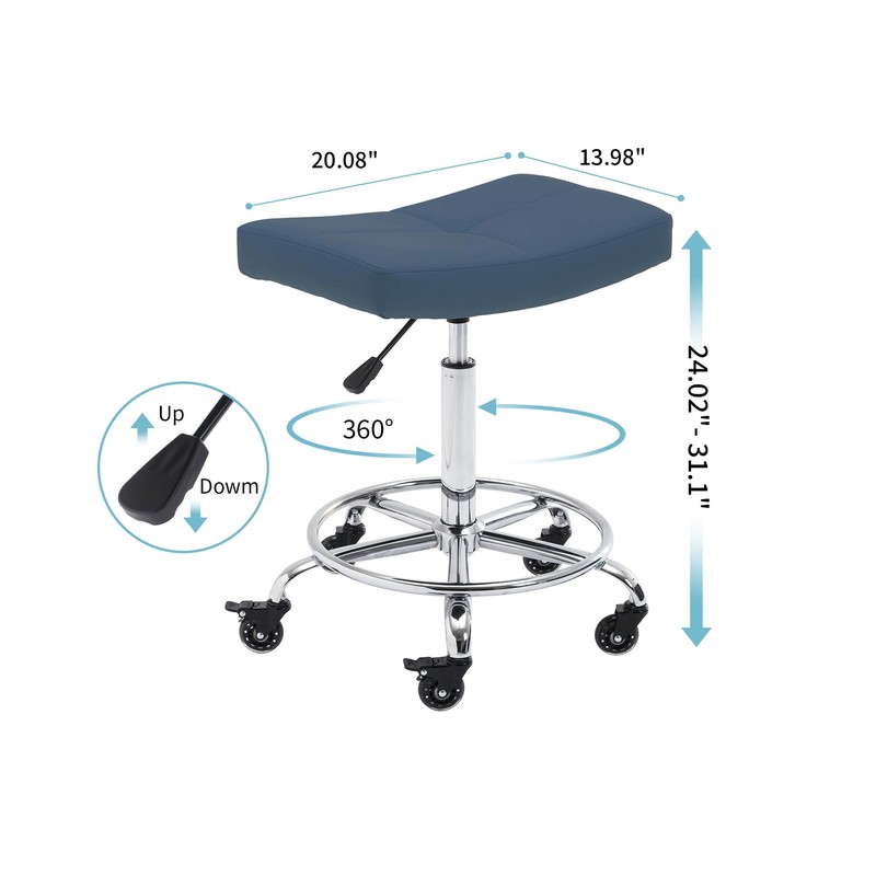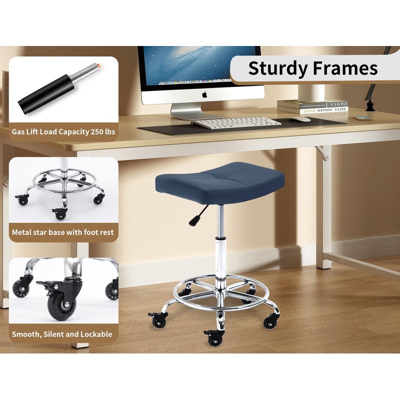 iMenting Wide Rolling Stools with Locking Rubber Wheels, Heavy Duty Rolling Stool Adjustable Height with Footrest for Office, Garage, Workbench, Swivel Drafting Work SPA Shop Salon Stools (Navy Blue)