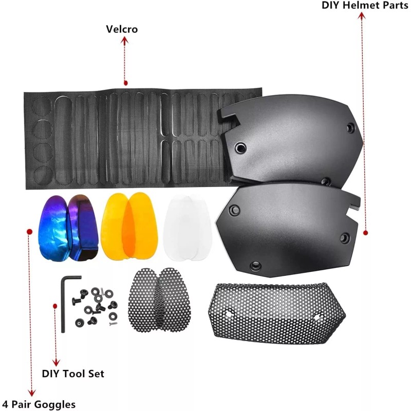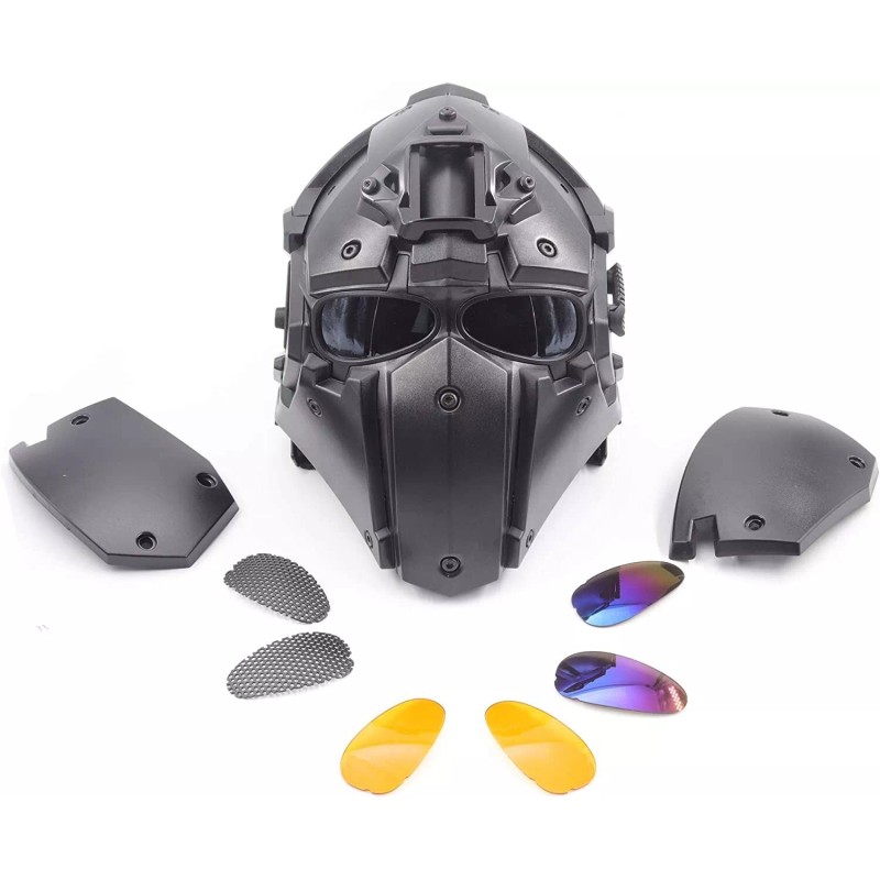 iMeshbean® Full Face Hunting Protective Mask Tactical Airsoft Helmet w/ 4 Pairs Goggles BK