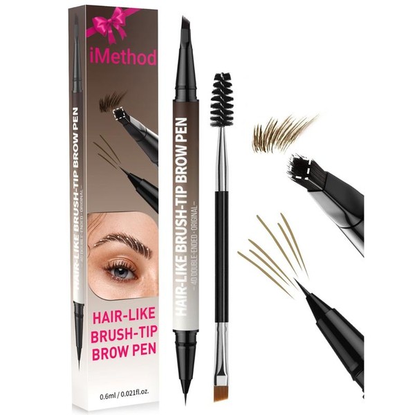 - iMethod 4D Brow Pen, 2-in-1 Eyebrow Pencil with Waterproof Microblading and Dual-Ended Eyeliner Brush for Natural Brow Makeup and Eyelash Line