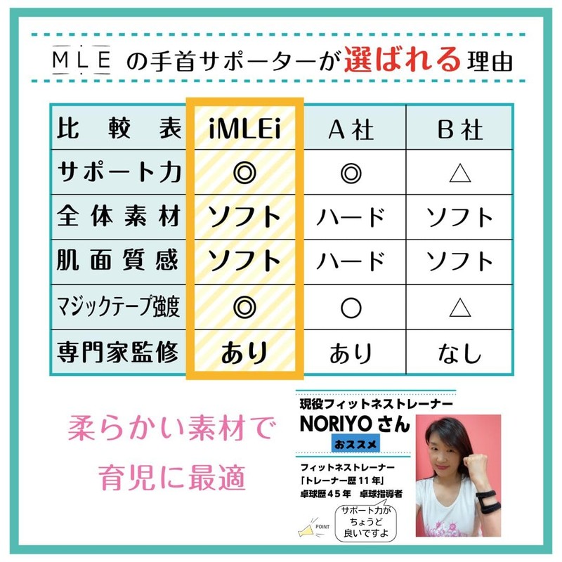 • 【フィットネストレーナー監修】卓球歴40年・卓球指導者・フィットネストレーナー歴11年のNoriyoさん監修。自身も腱鞘炎の手首の痛みがあり,サポーター 手首用を色々試し探しましたが、iMLEiの手首 サポータを監修しました。リストバンド仕様で手首可動域を邪魔しないのでレッスン中、プライベートでも毎日着用しています。マウスパッド 手首 指 サポーターとしても良いですね。外さずに手洗い可能で蒸れにくい構造なので着けたまま一日中快適に過ごせると大満足しています。