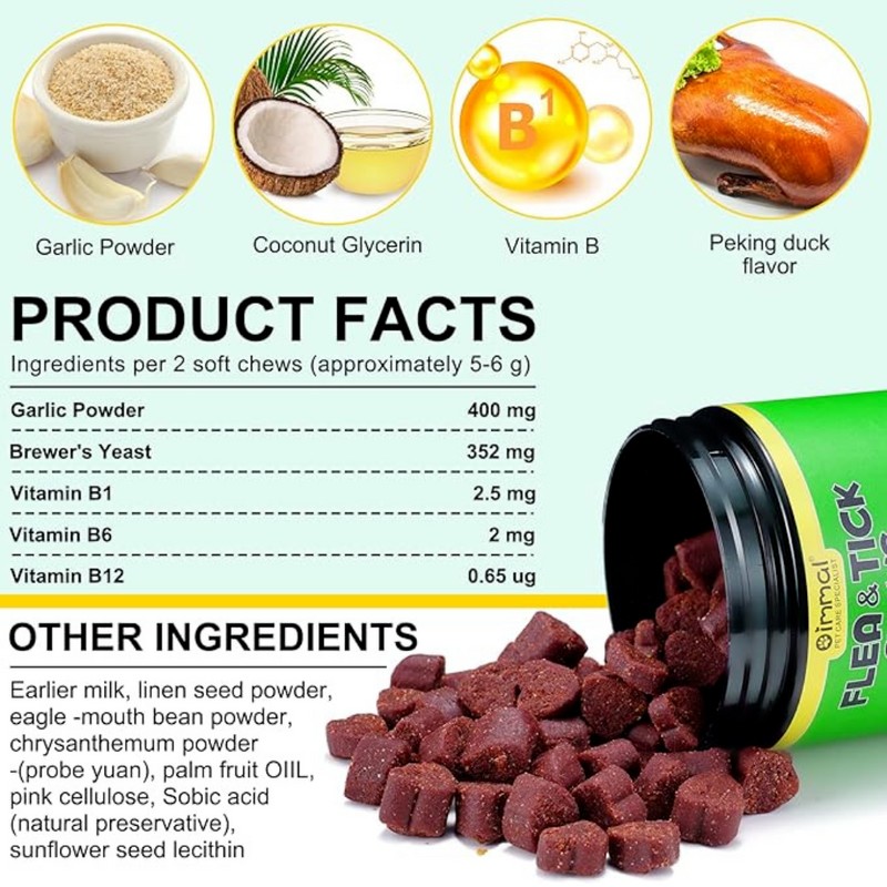 Immal Flea and Tick Prevention for Dogs Chewable, 150 Chews Dog Natural Flea & Tick Co