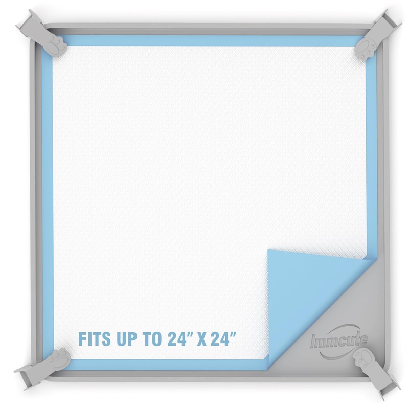 IMMCUTE IMMCUTE Pee Pad Holder, Fits Up to 24" x 24" Training Pads, Silicone Non-Slip Dog Potty Tray,High Edge Puppy Pad Holder Tray for Easy Cleaning with 8 Holder Clamps, for Puppy Potty Training