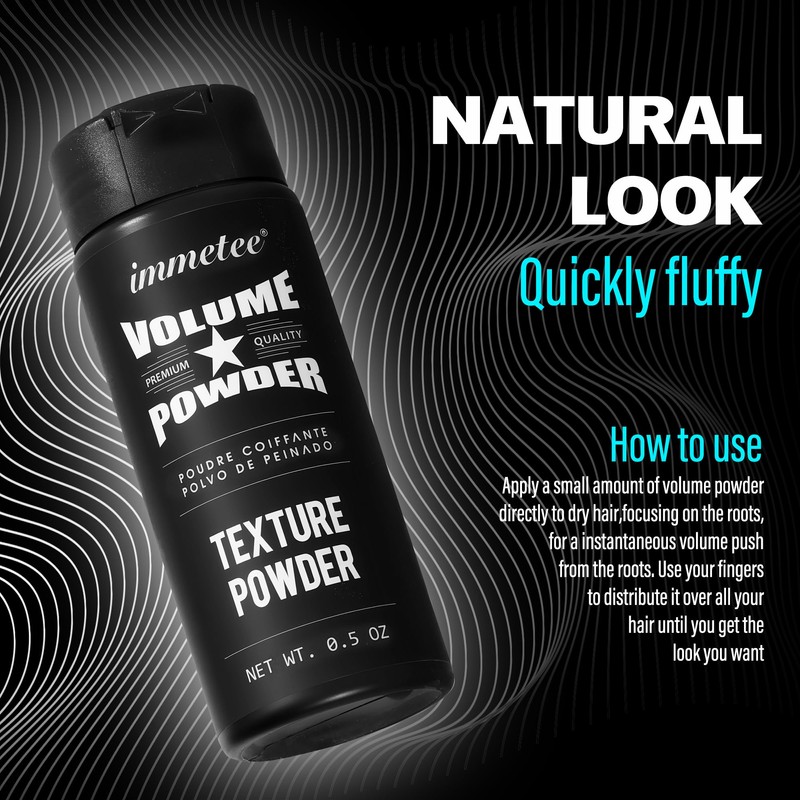 - Hair Volume Powder Keep it Fluffyimmetee hair volume powder provides volume and texture for all types of hair and lengths with a natural and opaque finish. The powder for hair volume leaves no white lines or fat residues on the hair, but only a natural feeling