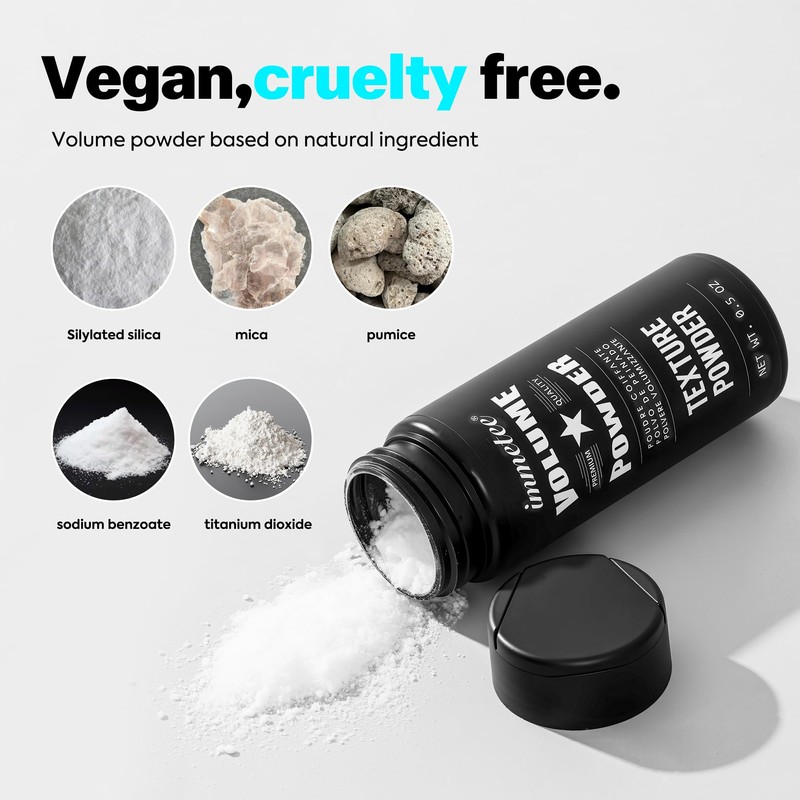 - Long duration and ease of useThe hair volume powder for immetee styling is easy to apply and has a long shelf life. They add texture and body to the hair, giving it volume, structure and shape. Hair volume powder, light and portable, can be worn comfortably at any time and anywhere