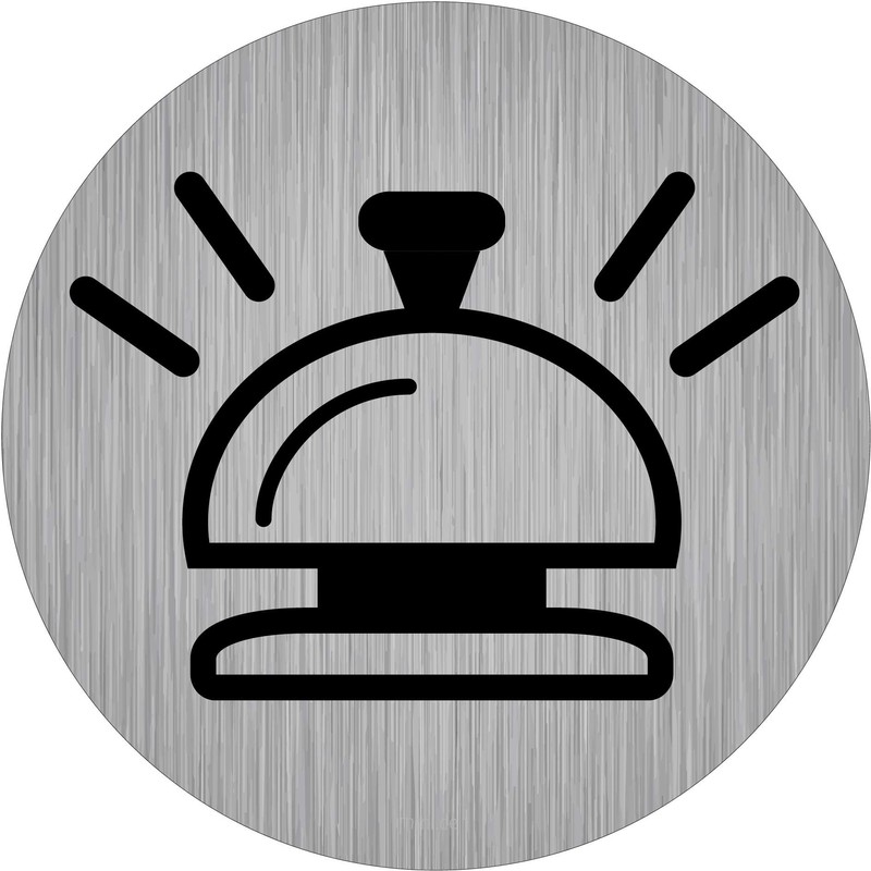 immi 4 x Stickers "Bitte klingeln for Hotel Reception", 95 mm Diameter, Round, Stainless Steel Look
