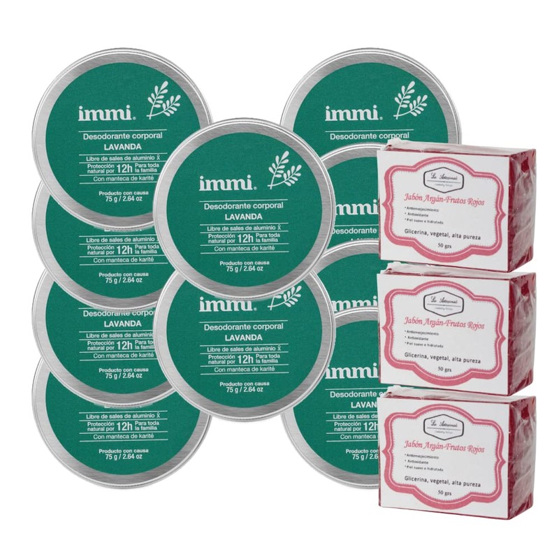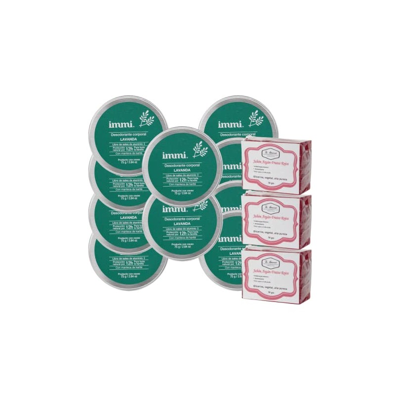 IMMI BY VERDE A LA MEXICANA 10 piezas Desodorante tarro 75gr y 3 piezas Jabón 50gr La Artesanal (10, Lavandas)