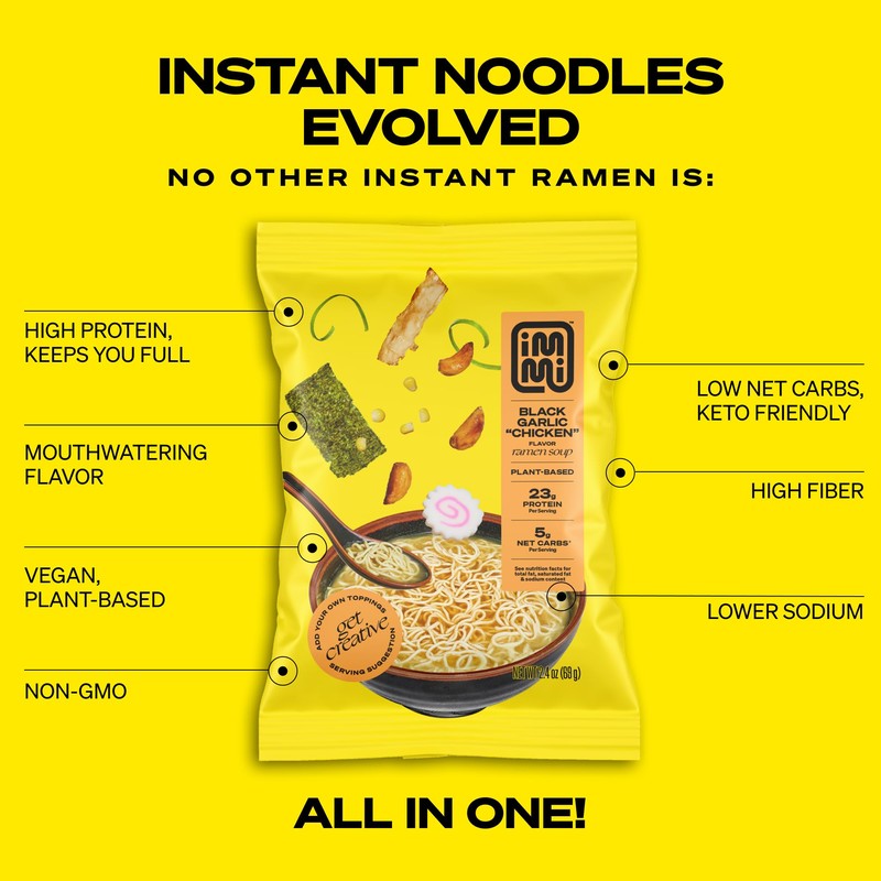 - A NEW TAKE ON NOODLES: immi reinvents the delicious Asian American foods we love with added nutrition. We've started by enriching the comforting, umami rich, and nostalgic bowl of instant ramen. Our single goal: capture that same oh so satisfying ramen feeling with a makeover of better ingredients and crafted flavors for a more nutritious, and equally delicious bowl.