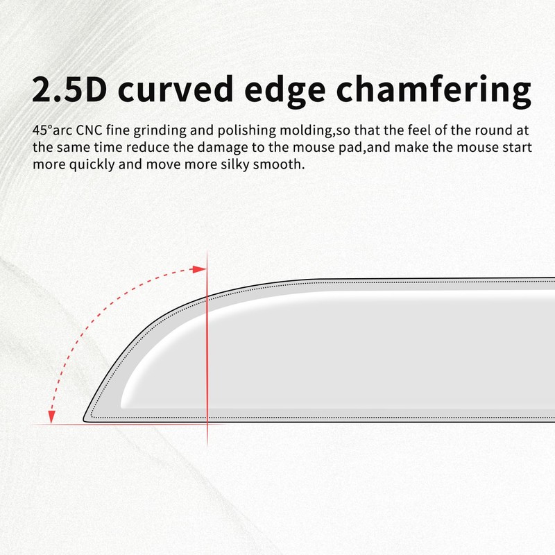 - Diseño: diseño de curvatura 2.5D, contacto redondeado con el escritorio, reduce la fricción, hace que el mouse se mueva más suave y sedoso