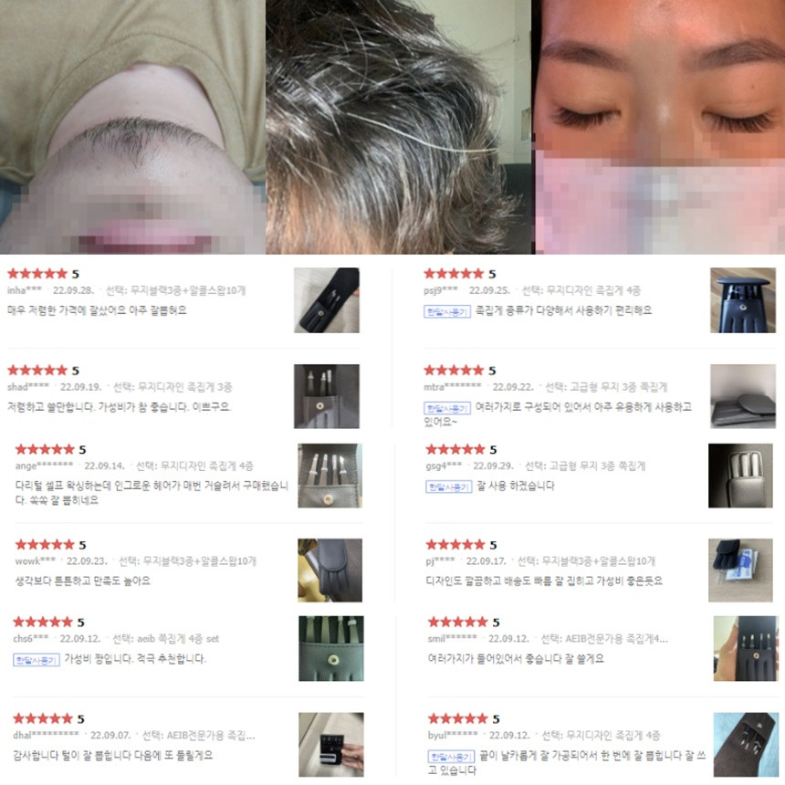 Immols professional tweezers set, beard tweezers, gray hair, fine hair, eyebrow hair removal tweezers, Immols tweezers 3-piece set (black) / 이몰즈 전문가용 족집게 세트 수염 쪽집게 흰머리 미세모 눈썹 제모 핀셋, 이몰즈 족집게 3종세트(블랙)