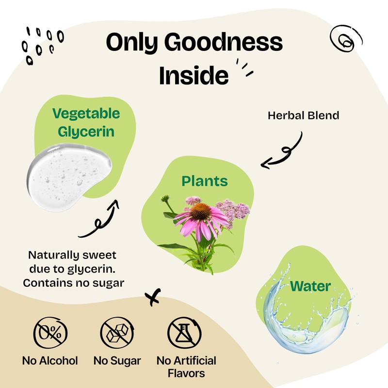 - Clean Formula: Our elderberry & echinacea complex, purified water, and glycerin create a pure formula, free from sugar, alcohol, preservatives, artificial colors, or animal-derived ingredients.