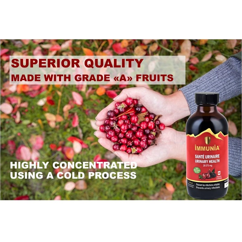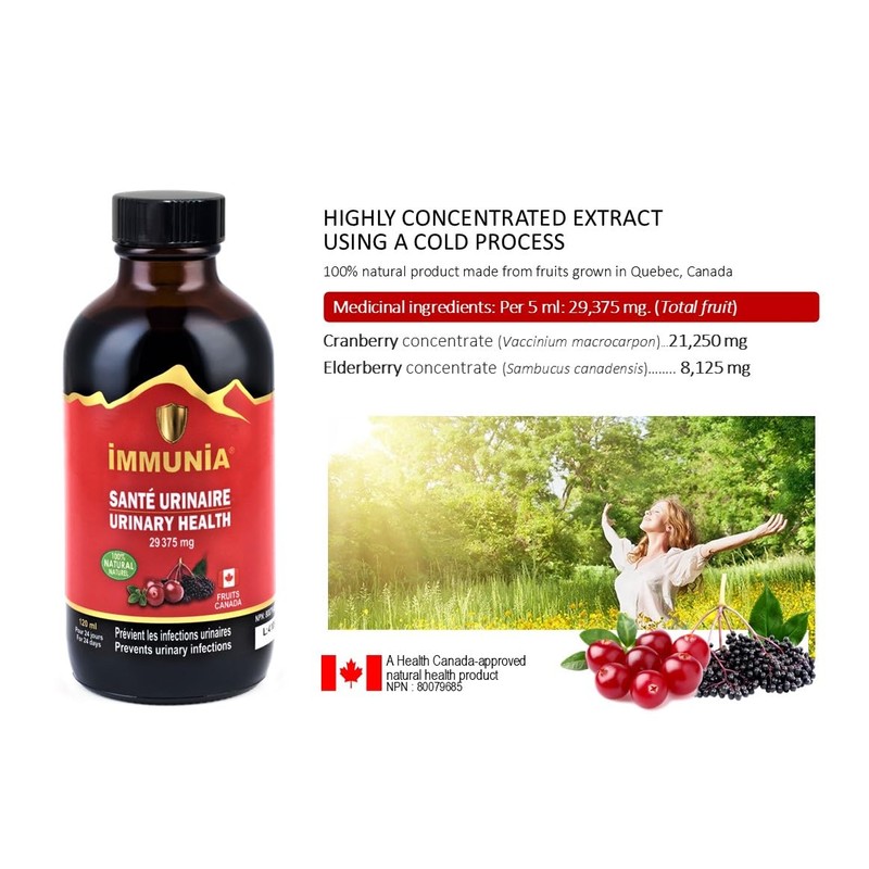 Immunia Immunia Urinary Health. Prevent Urinary Tract Infection (Women & Men). Cranberry & Elderberry Concentrate. Natural Antioxidant. Delicious Taste. 5 ml/day. Made in Canada. (1-pack)