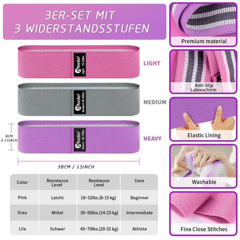 - ✔ Non-slip resistance bands – made of thickened non-slip polyester fabric and highly elastic rubber layer, the band set is tear-resistant, elastic, skin-friendly and durable than normal rubber bands. Washable.