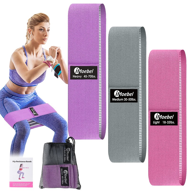 iMoebel Resistance Booty Bands, Set of 3 Fitness Bands, Resistance Bands for Legs and Buttocks Made of Non-Slip Elastic Fabric