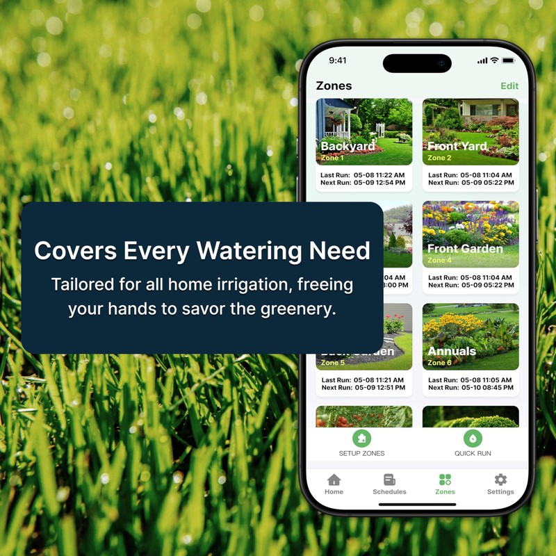 - App Control from Anywhere – With the ImoLaza app, you can manage zones, adjust settings, start or stop watering, and view detailed reports—anytime, anywhere. Stay in full control whether you're home, at work, or on vacation