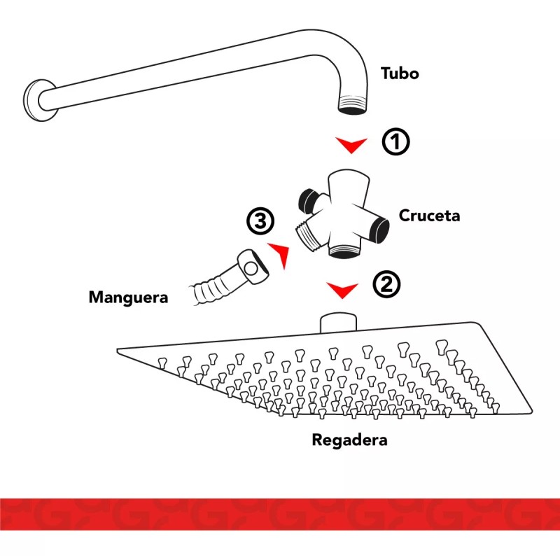 • La entrada de la cruceta, de la manguera y de la regadera de mano es de ½”. Que es la entrada más común para instalar regaderas.