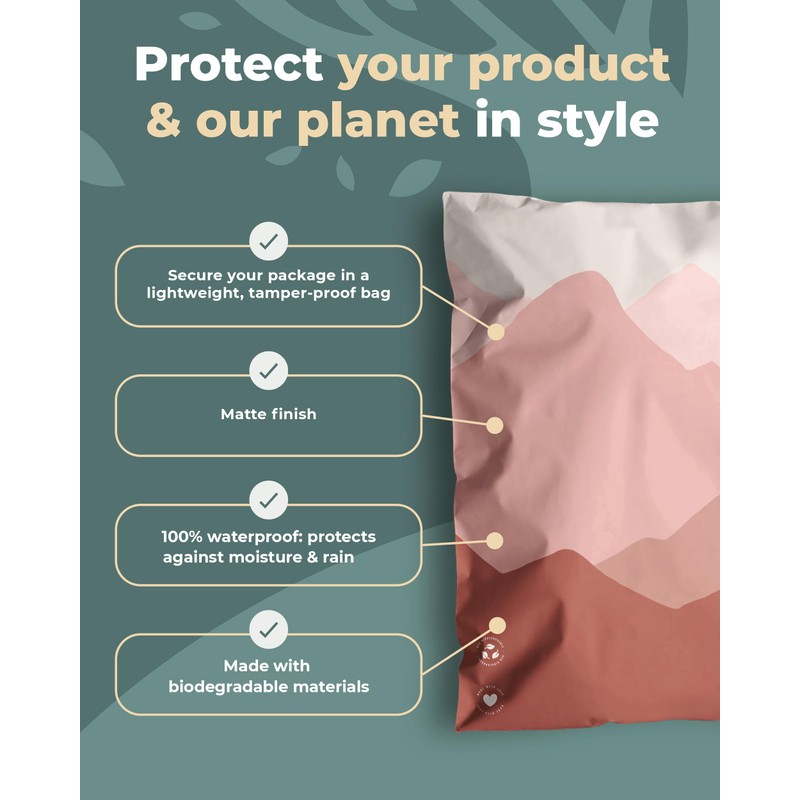 Impack Biodegradable Mailers 6x9 25pack- Flat Shipping Bags - Self-Seal, Waterproof - Printed Mailing Bags - Thick Mailing Envelope for Stationery and Small Accessories - Mountain Clay