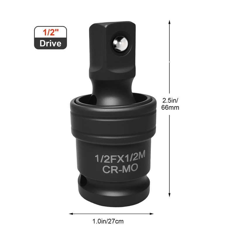- Impact-Ready Performance: This impact-rated universal joint socket adapter features a spring-loaded locking ball mechanism that securely fastens to sockets or extension bars. Specifically engineered for impact applications, it works seamlessly with impact wrenches to deliver maximum torque transfer while preventing slippage or breakage