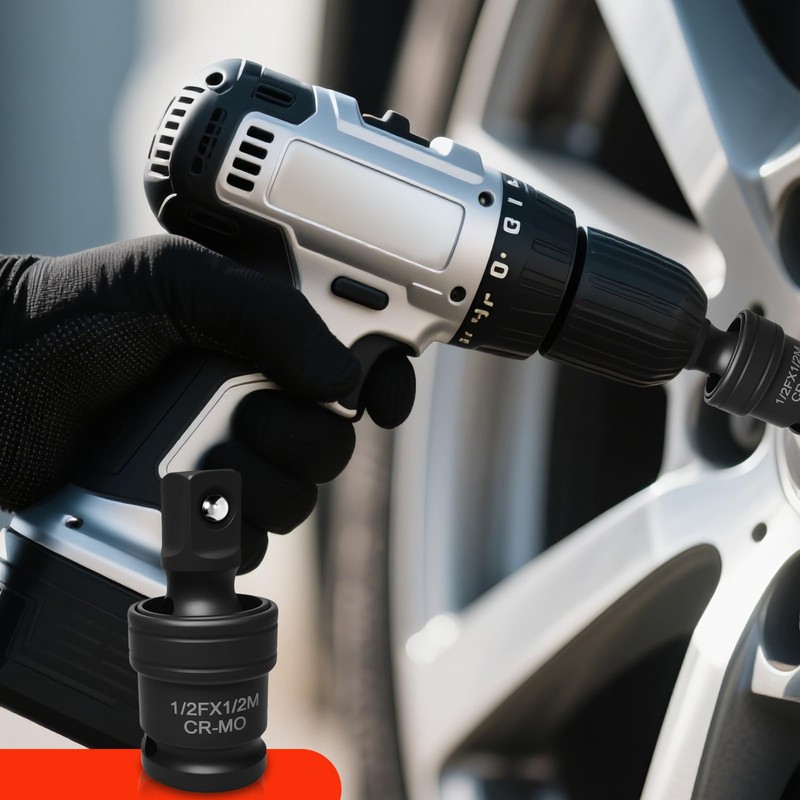 - The U-Joint Socket Adapter: This socket features a fully flexible 360° swivel joint, allowing easy access to bolts at awkward angles and expanding your drilling/fastening range. Designed for compatibility with all cordless, electric, and pneumatic impact wrenches