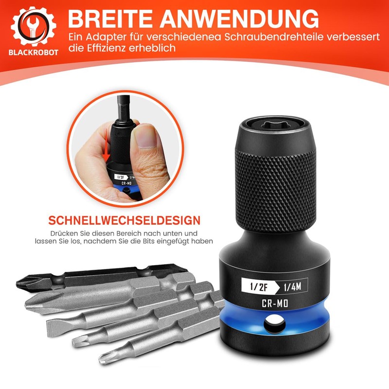 - 1/2 inch to 1/4 inch impact bit adapter: 1 piece impact bit holder: 1/2 inch square drive to 1/4 inch hex bit. It is mainly used to convert tool drivers and can help reduce the need for expensive tools.