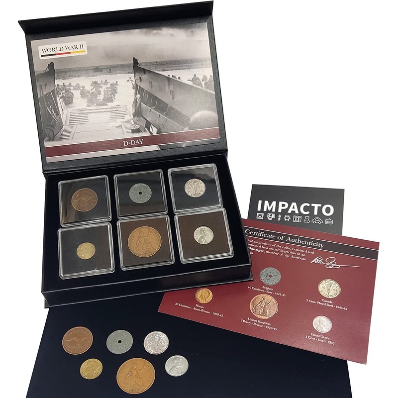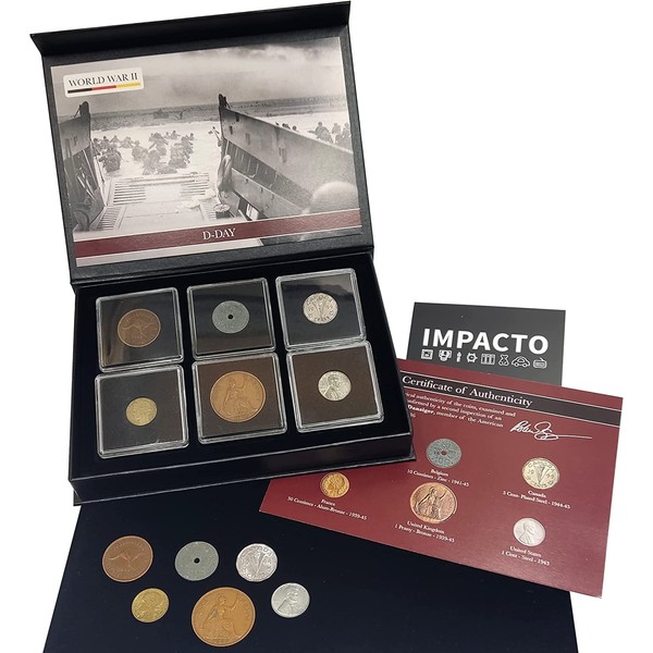 IMPACTO COLECCIONABLES World War II - 6 coins used during the war D-Day Collection (1944) Special Collector's Memorabilia Includes Certificate of Authenticity