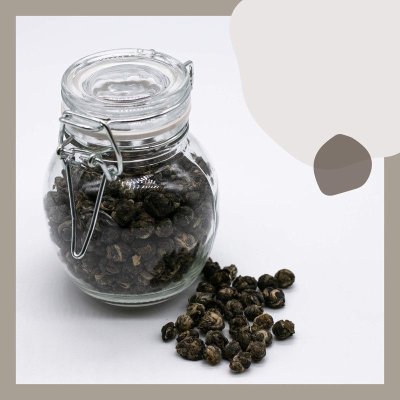- JASMINE GREEN TEA PEARLS: 4 oz of jasmine dragon pearls. Packaged in a high-quality resealable foil pouch
